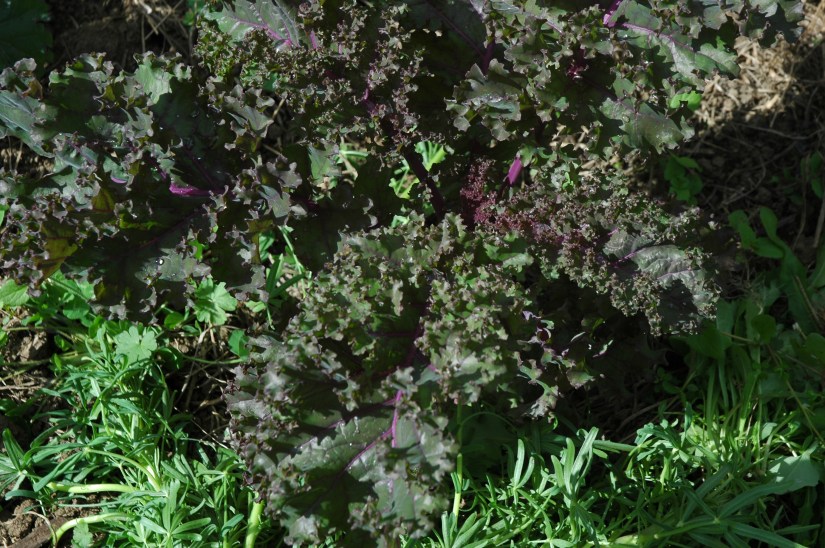 Red kale with lupins cut and dropped as a mulch